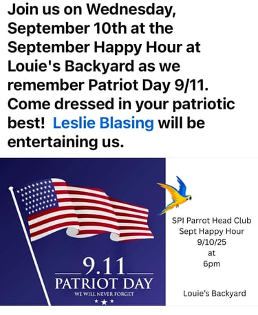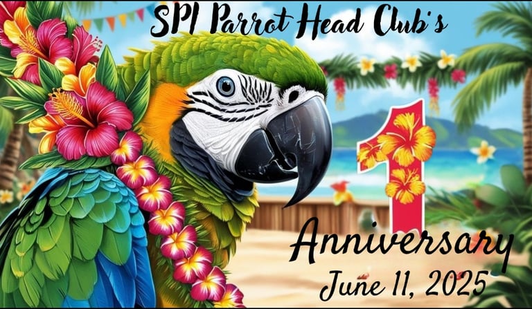 The SPI Parrot Heads kicked off summer with a splash—celebrating our one-year anniversary at June’s Happy Hour in true island style! 🌺🍹 With music, laughter, tropical vibes, and plenty of good company, we raised our glasses to a year of giving back, having fun, and living life the Parrot Head way.